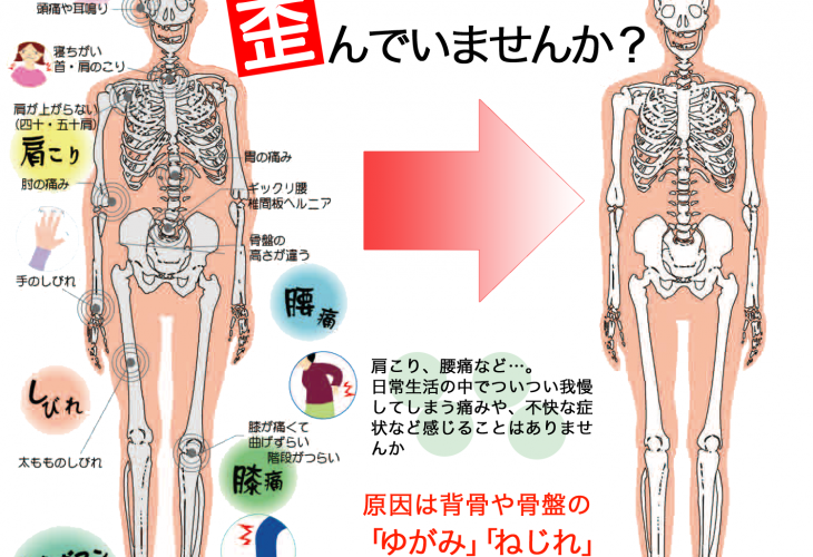 またその歪んだ状態を長年放置してしまうことで、その歪んだ状態が身体にすっかり定着してしまい、原因不明の体の不調が延々と続く・・・など不安な要素を長く抱えることにもなりかねません。