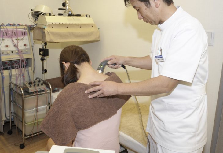 当院の施術はまず急性期であれば、アイシング・テーピングによる固定・超音波をいれたハイボルテージ療法・関節マニュプレーションを行います。あとは期間や症状によって鍼灸施術・矯正を行うことにより疼痛や圧迫感・目まい・ふらつきなどの症状がある方も改善が見られます。