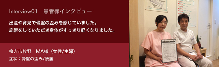 長年、肩こりと頭痛で悩んでいました。又、出産や育児で骨盤のゆがみや腰痛も感じるようになっていました。